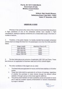 আকাশলংঘী মূল্যবৃদ্ধিৰ খবৰৰ মাজতে ইতিমধ্যে বিমান ভাড়াৰ সীমা নিৰ্ধাৰণ কৰিছে মন্ত্ৰালয়ে । অসামৰিক বিমান পৰিবহণৰ ৰাজ্যিক মন্ত্ৰী মুৰলীধৰ মোহলে এক্সত এটা প’ষ্টত ভাড়াৰ সীমাৰ বিশদ বিৱৰণ দিয়া নিৰ্দেশটো শ্বেয়াৰ কৰে । তেওঁ কয় যে চৰকাৰে যাত্ৰীসকলক সুৰক্ষা প্ৰদান আৰু সুস্থিৰ, সুলভ বিমান যাত্ৰা নিশ্চিত কৰাৰ বাবে প্ৰতিশ্ৰুতিবদ্ধ ।